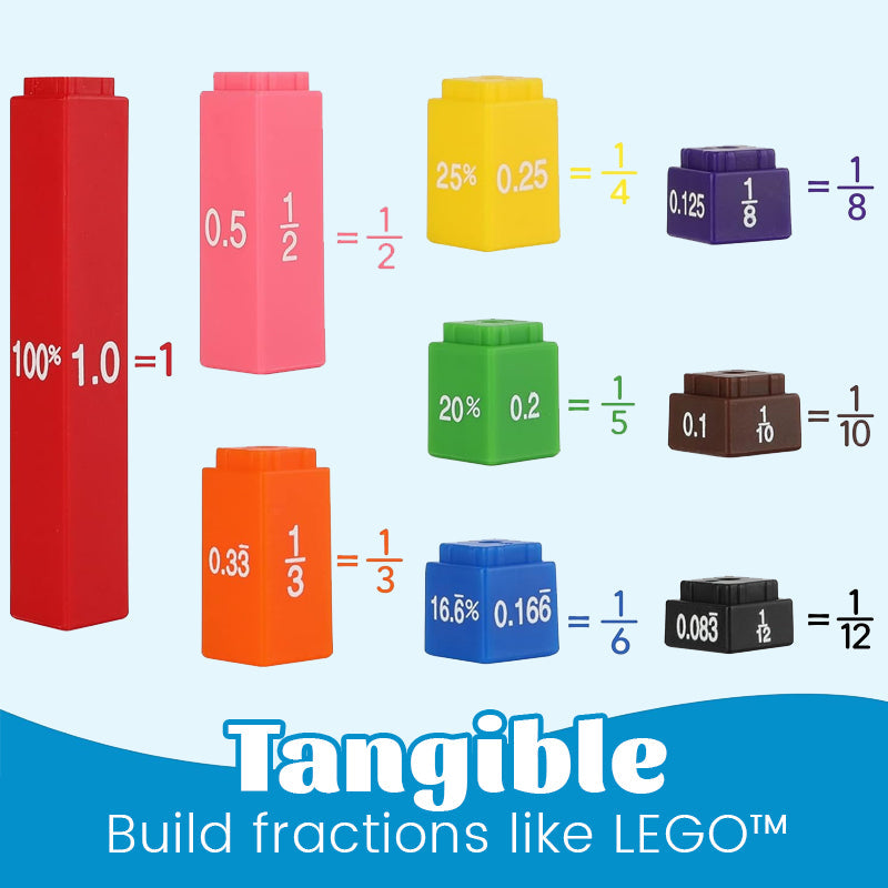 With vibrant, interlocking cubes and hands-on challenges, your child will physically see how ½ = 2/4 = 0.5 — and actually get it.