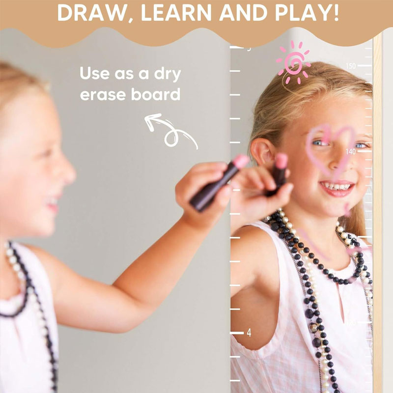 ๐จโ๐ฉโ๐งโ๐ฆSave Space & Save Money: with its 3-in-1 design, this Growth Chart Mirror offers excellent value for money and saves space. It doubles as a Full-body Mirror and a Dry-erase board.