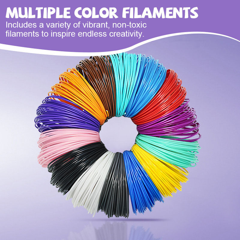 🎨 Multiple Color Filaments: Includes a variety of vibrant, non-toxic filaments to inspire endless creativity.